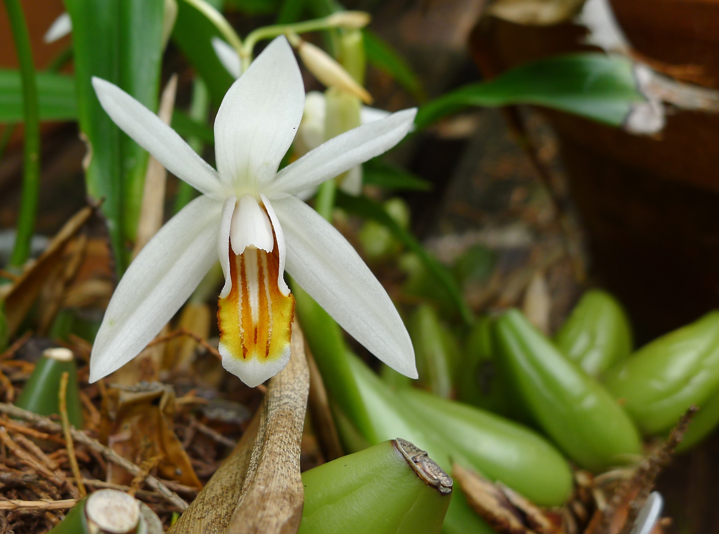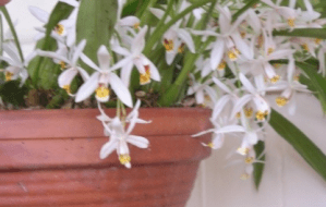 My Coelogyne orchid has just sprouted a short curtain of ivory flowers almost overnight…all signs that spring has yielded to summer.