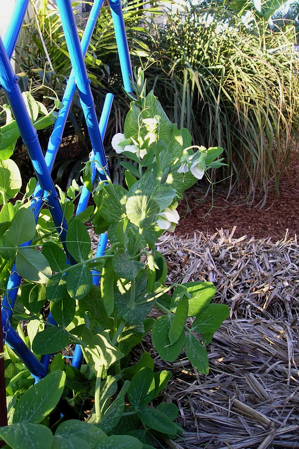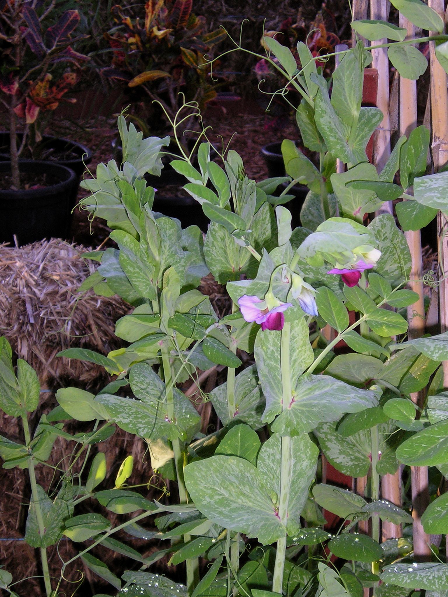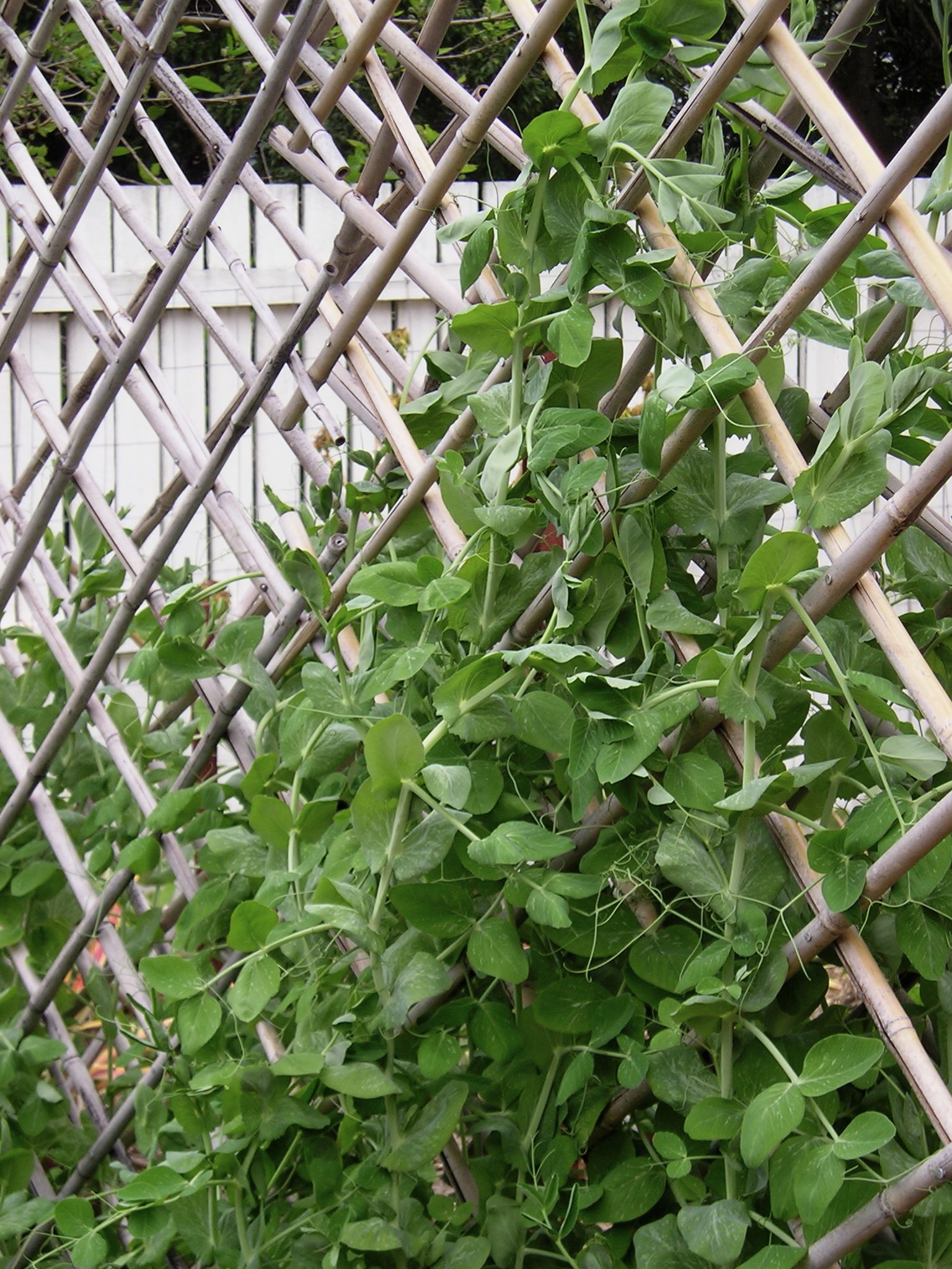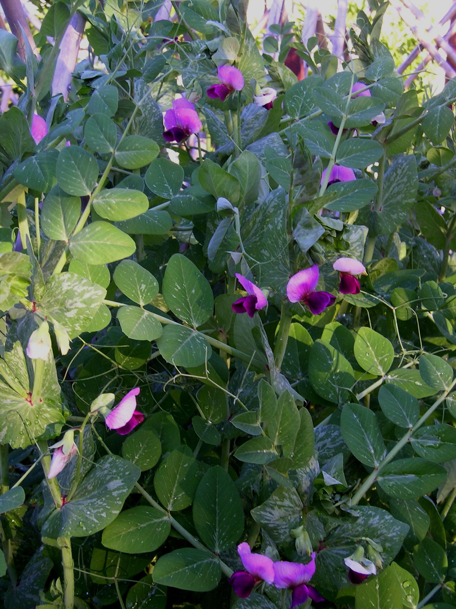 We’ve got some very healthy heritage snow and shelling peas, Pisum sativum var. sativum, most of which came from Seedsavers.