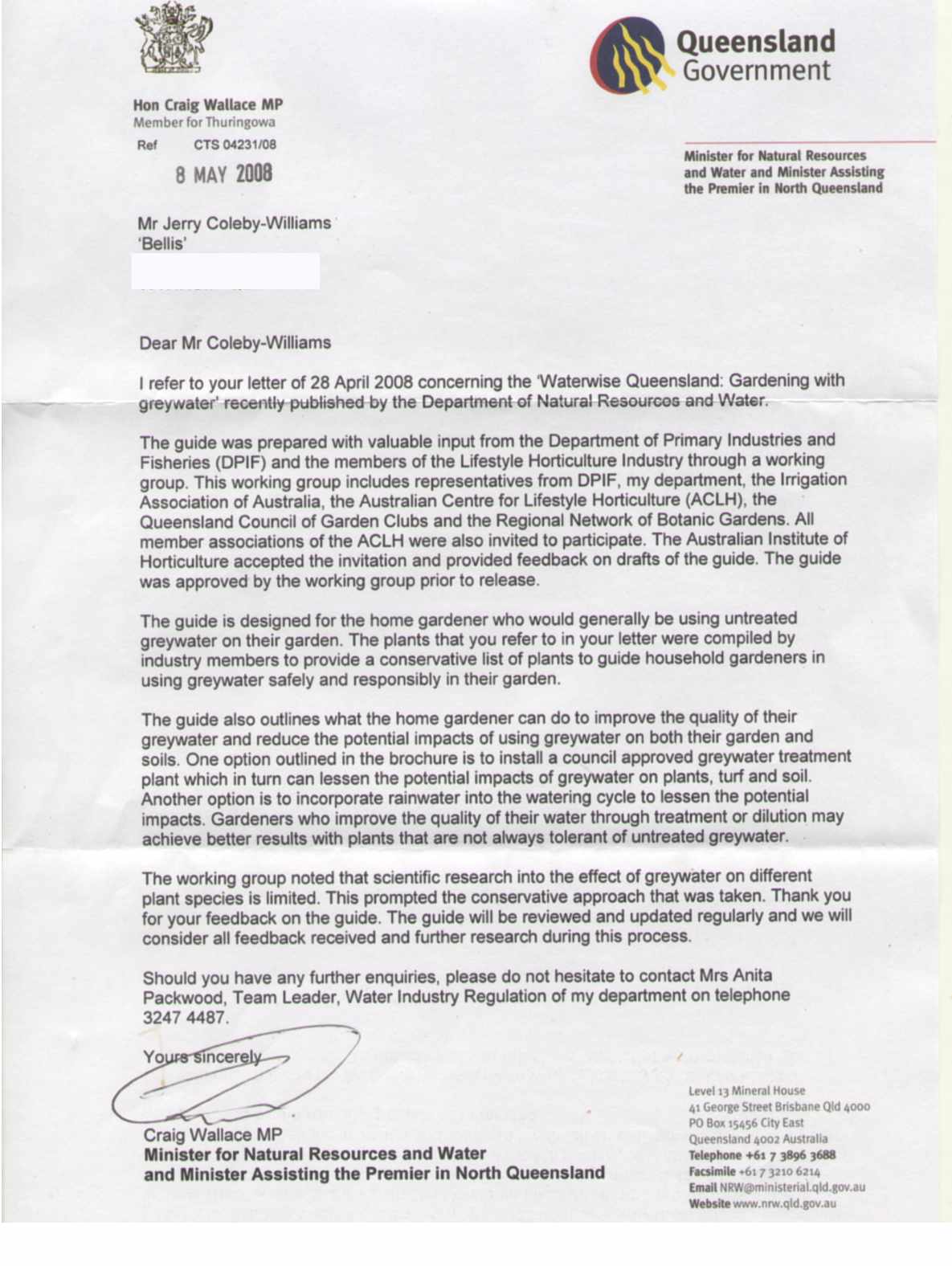 The Minister’s reply to my previous blog