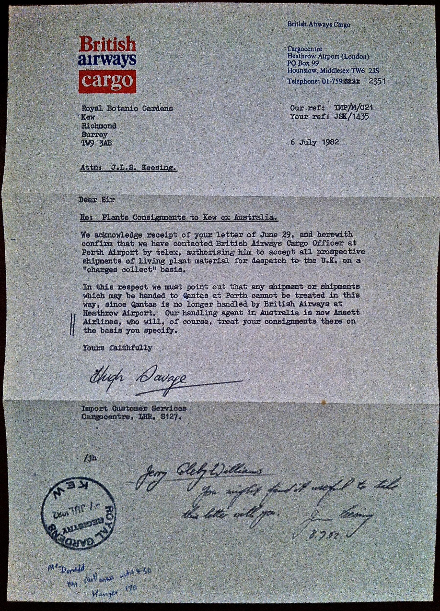 British Airways cargo 6.7.1982 – 1