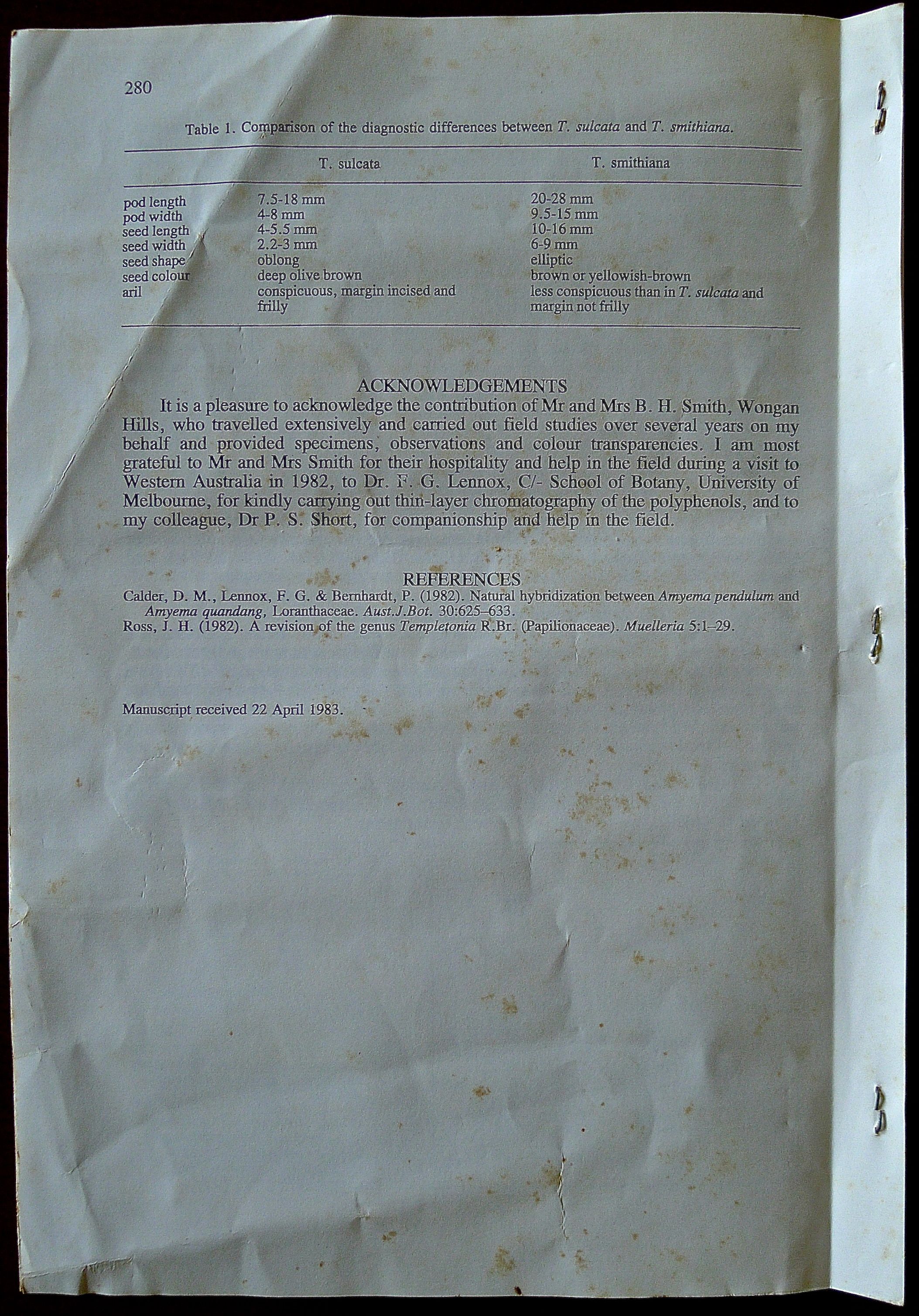 Templetonia smithiana, 1983 – 4