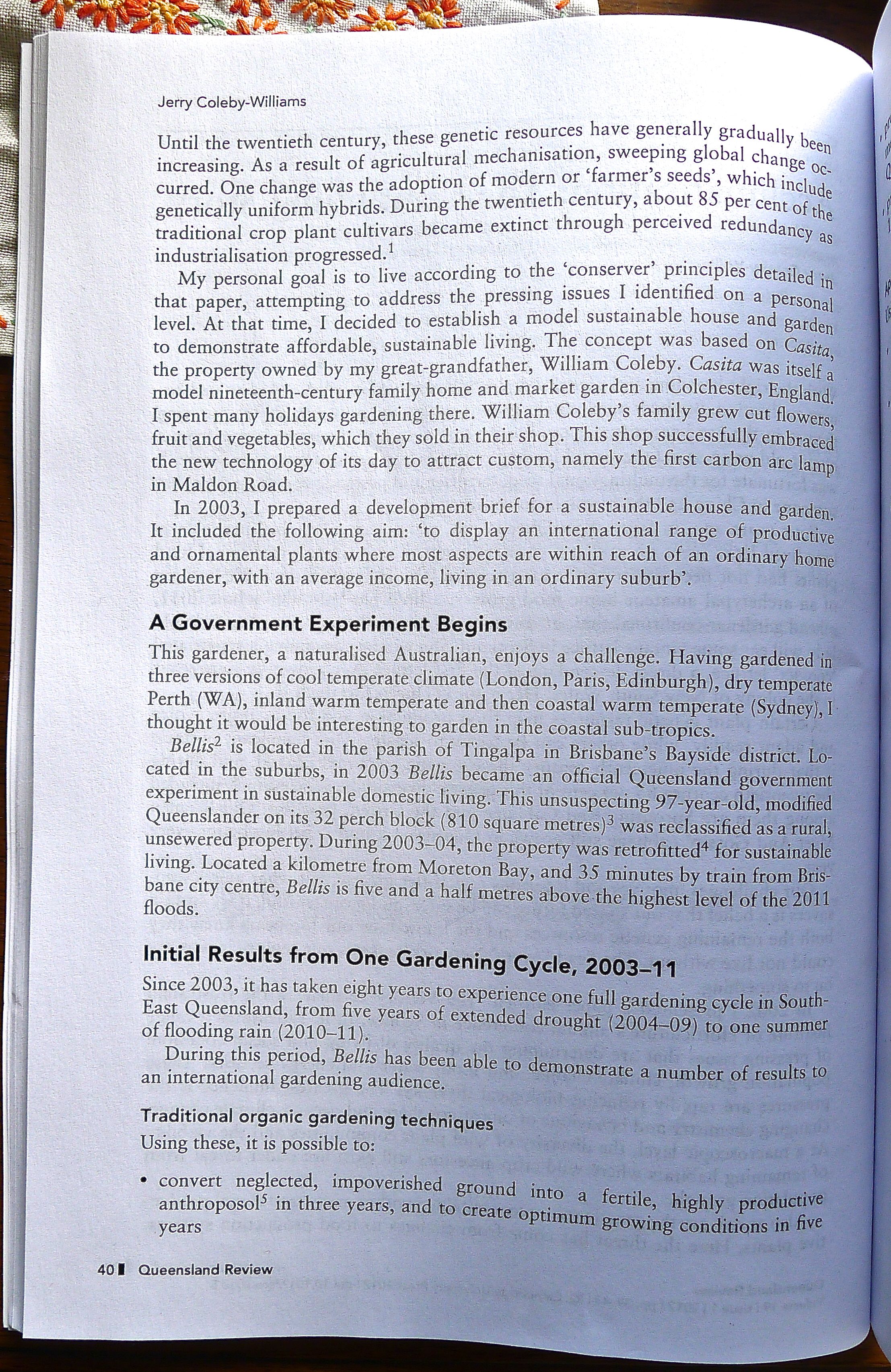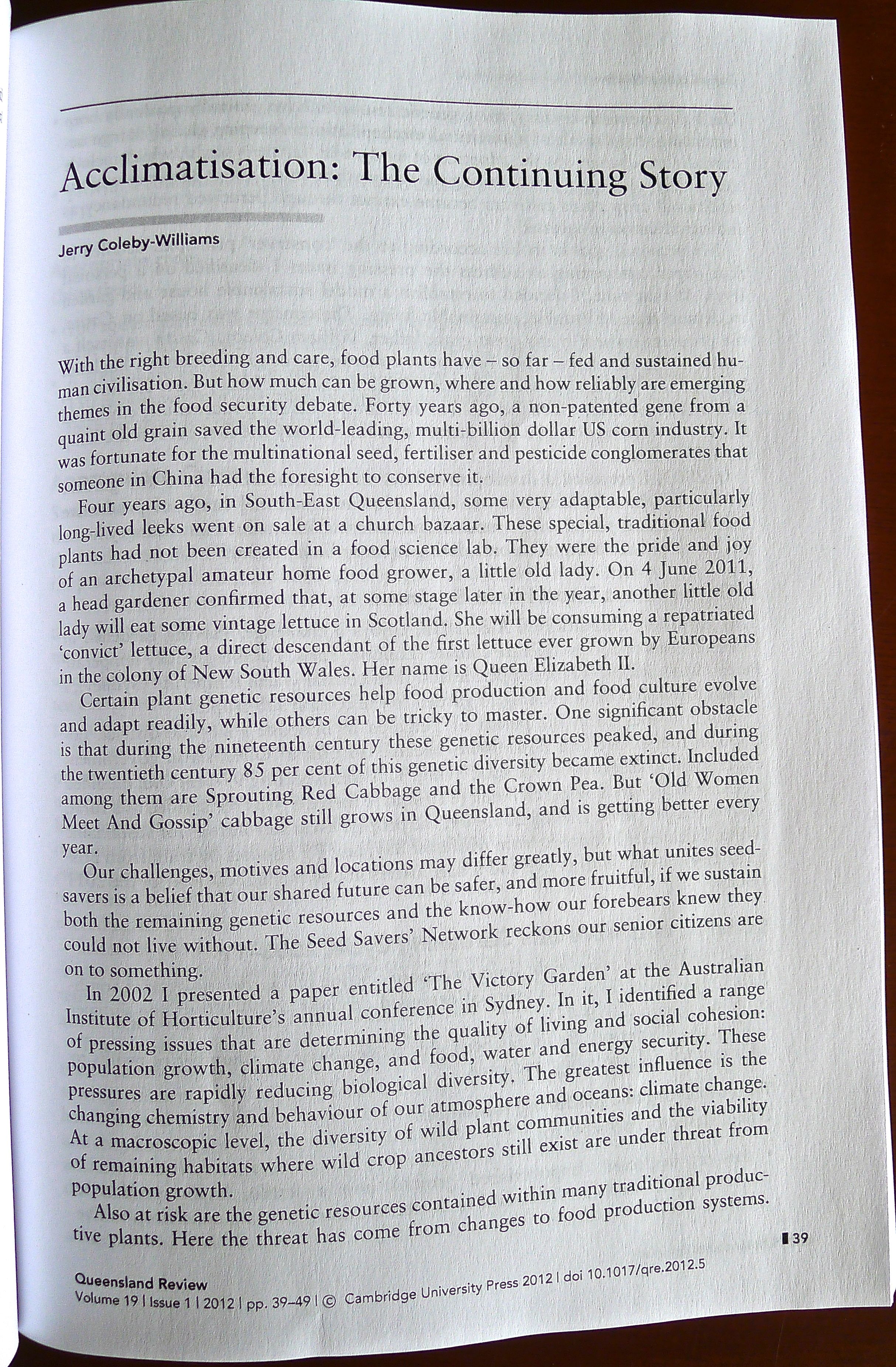 Just received my copy of ‘Queensland Review‘, in which is printed the paper I presented on acclimatisation and seed saving at the Australian Garden History Society‘s conference in Maryborough, 2011…