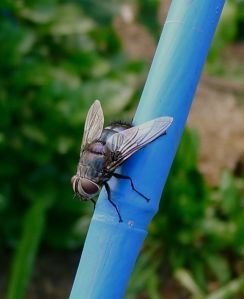 Blue rutilia fly, Rutilia simplex, parasitises scarab beetles – 3 – Version 2
