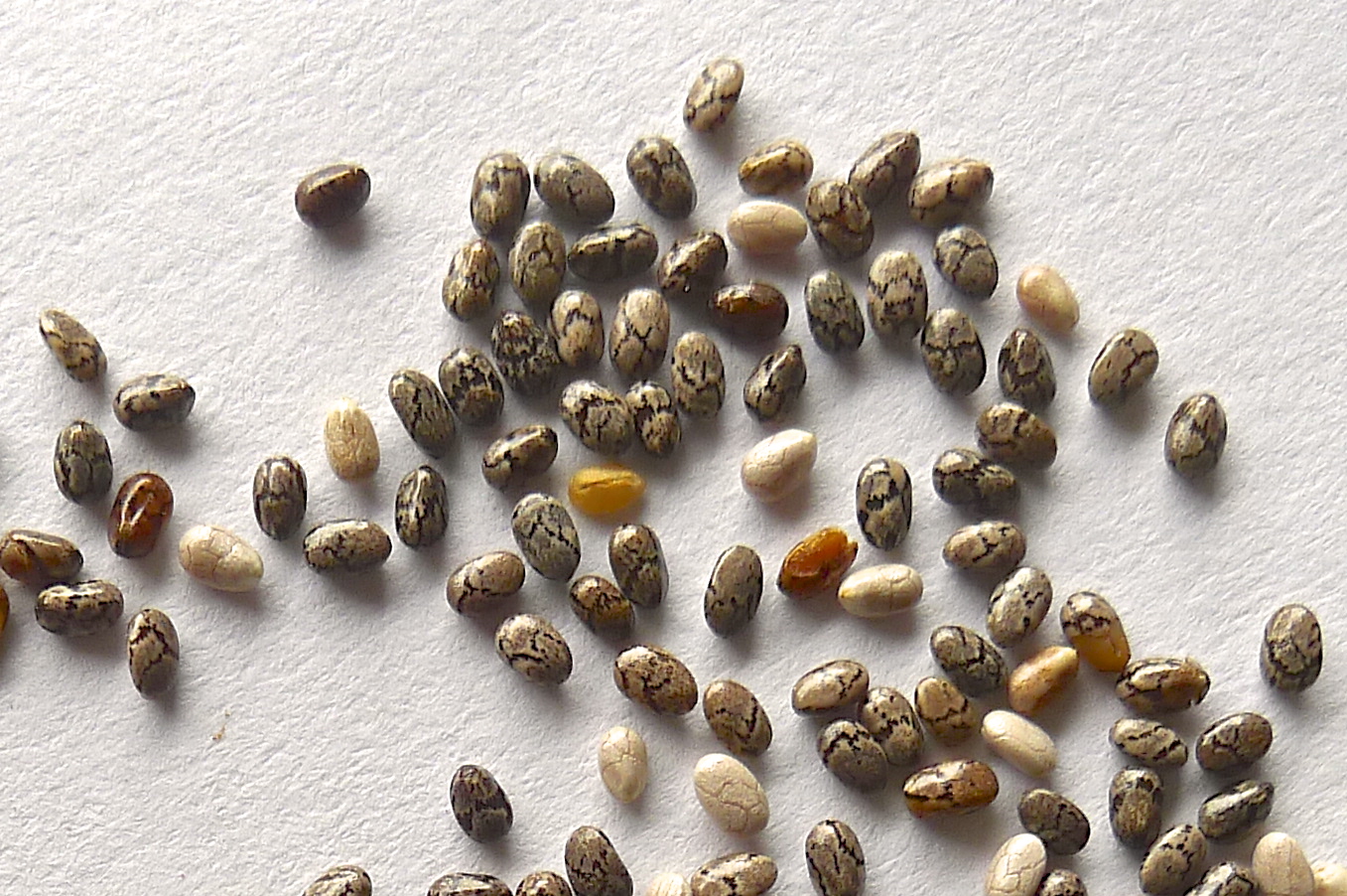 Chia seed, Salvia hispanica, an annual seed crop. Currently popular for its nutritious seed.