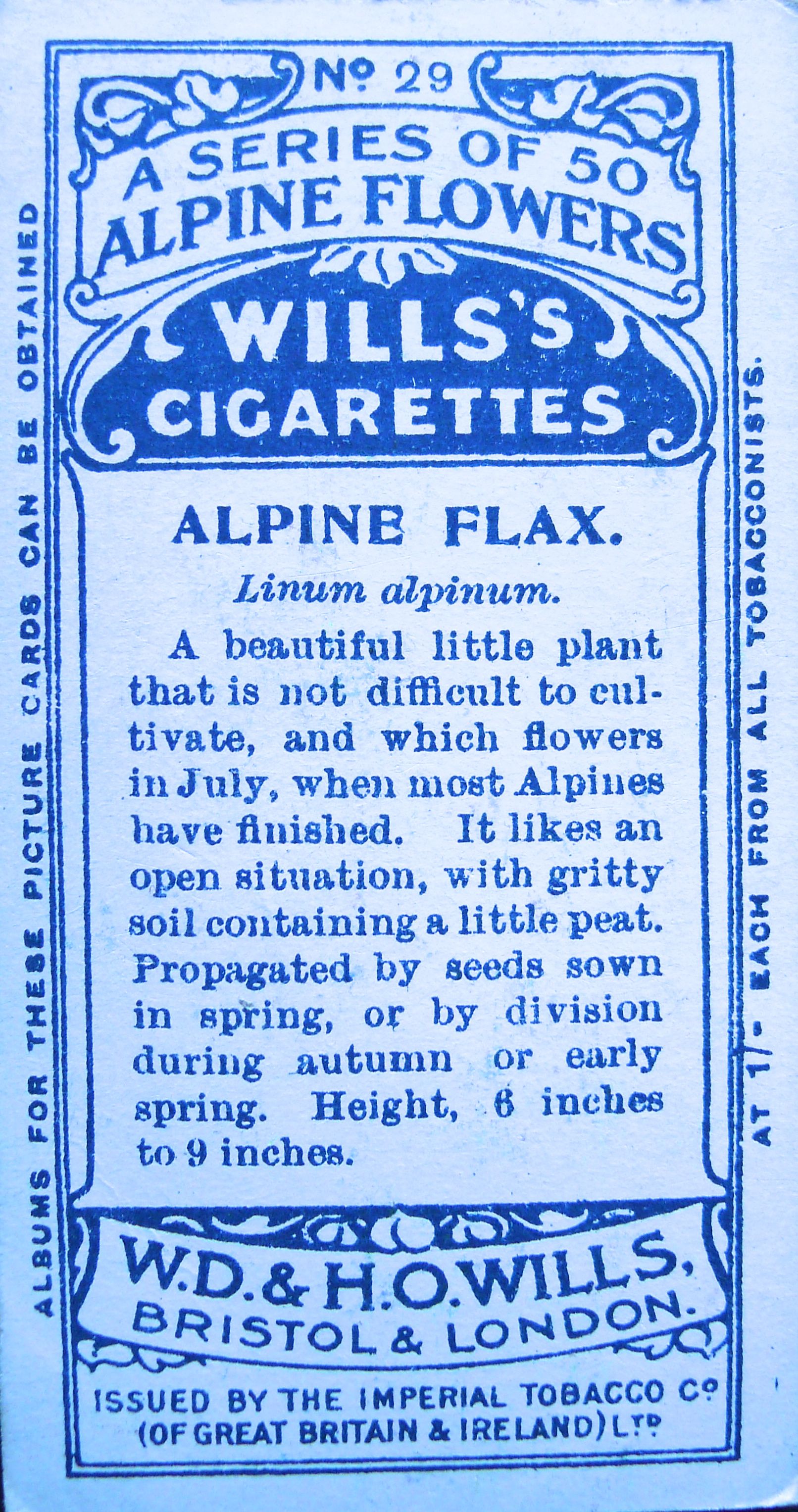 Alpine flax, Linum alpinum, Wills’ Alpine Flowers, 1913 – 2