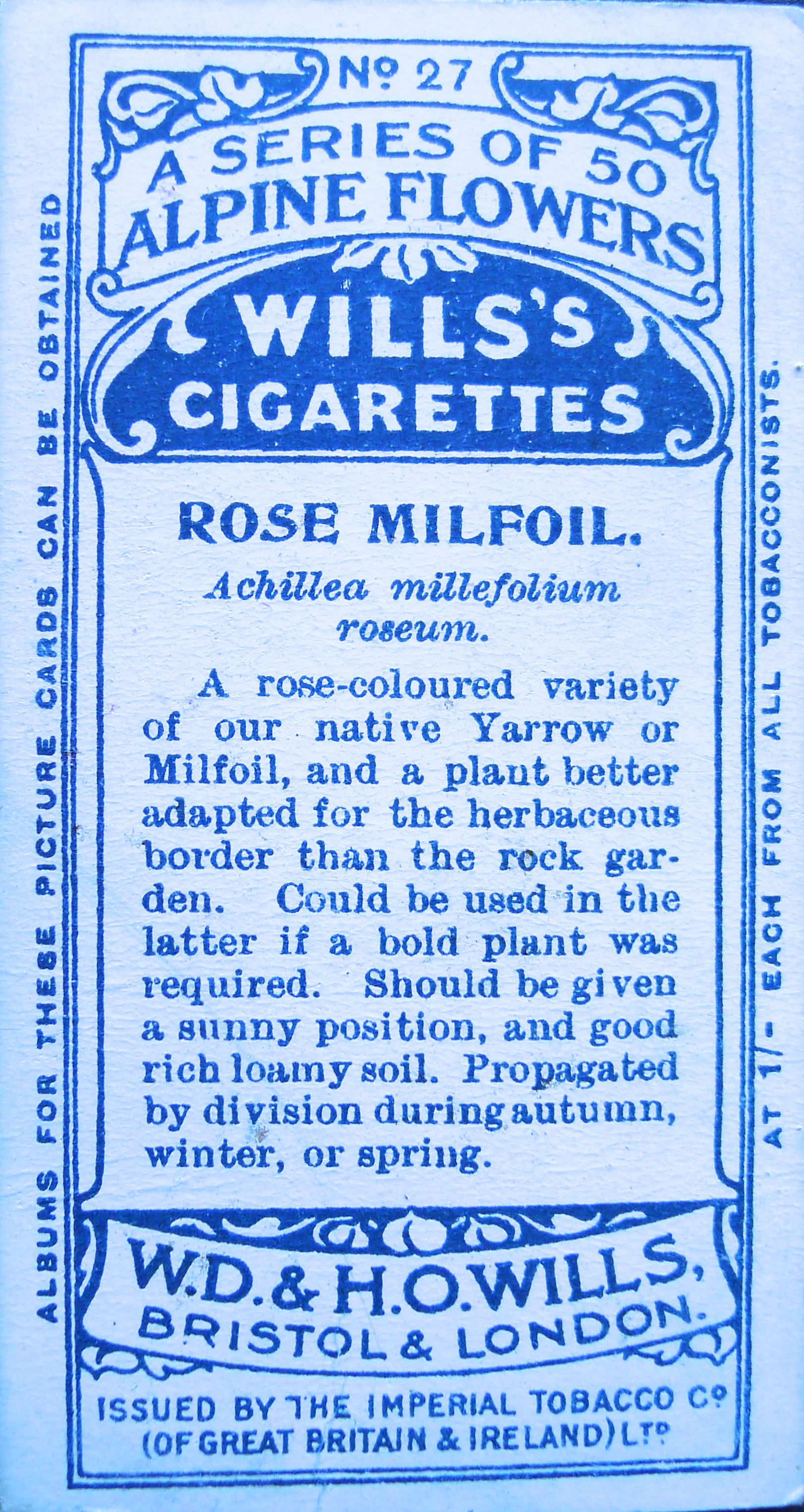 Alpine milfoil, Achillea millefolia f. rosea, Wills’ Alpine Flowers, 1913 – 2