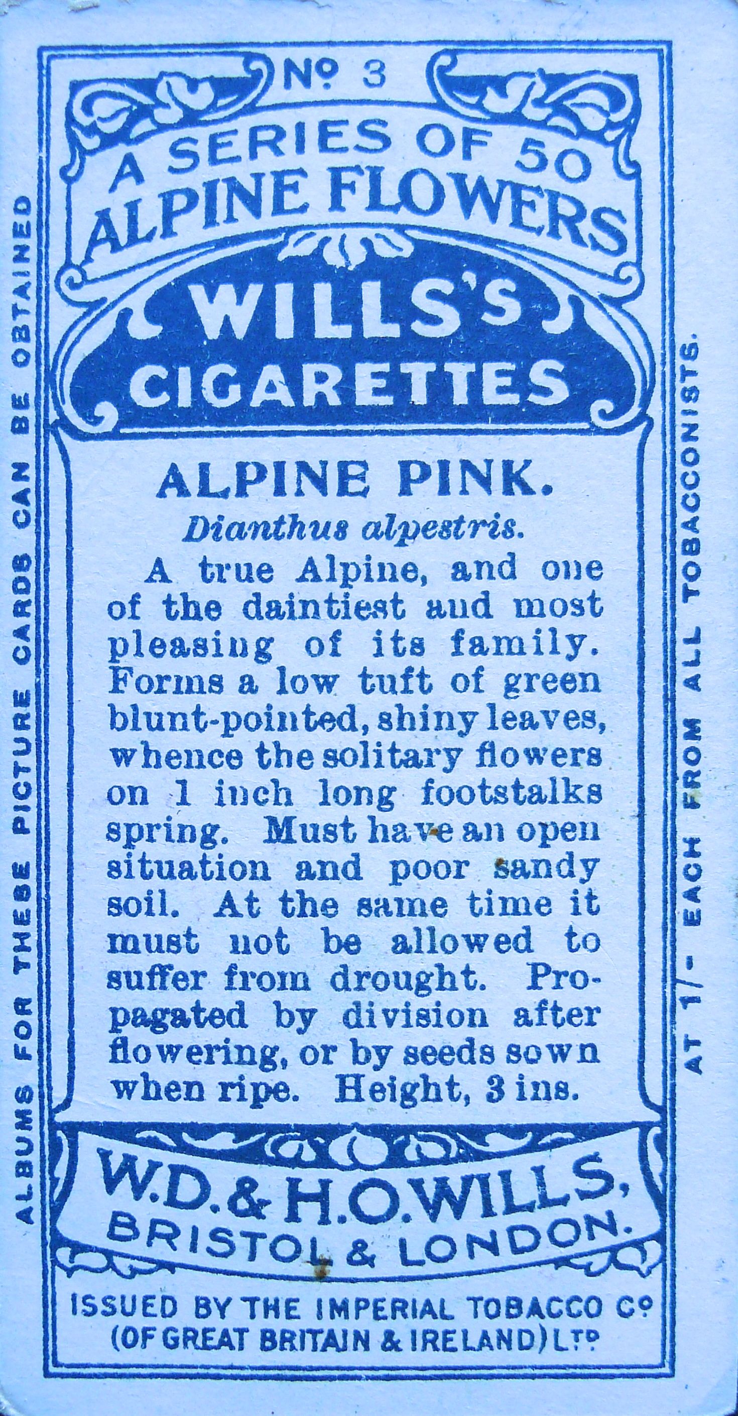 Alpine pink, Dianthus alpinus, Wills’ Alpine Flowers, 1913 – 2