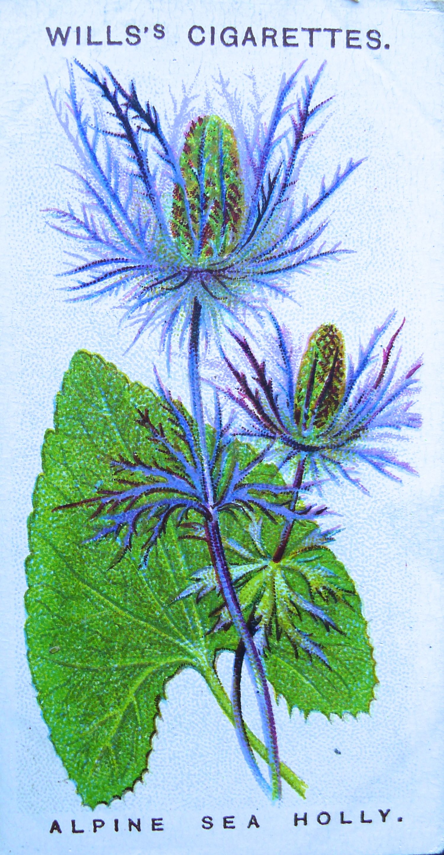 Alpine sea holly, Eryngium alpinum, Wills’ Alpine Flowers, 1913 – 1