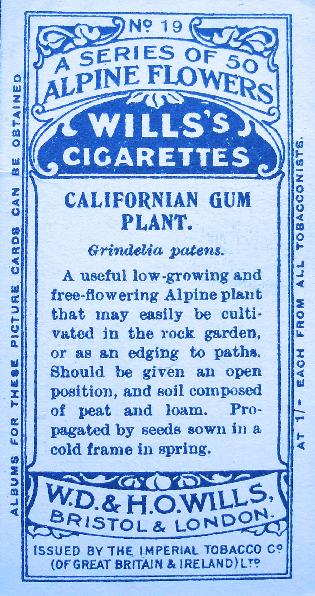 Californian gum plant, Grindelia patens, Wills’ Alpine Flowers, 1913 – 2