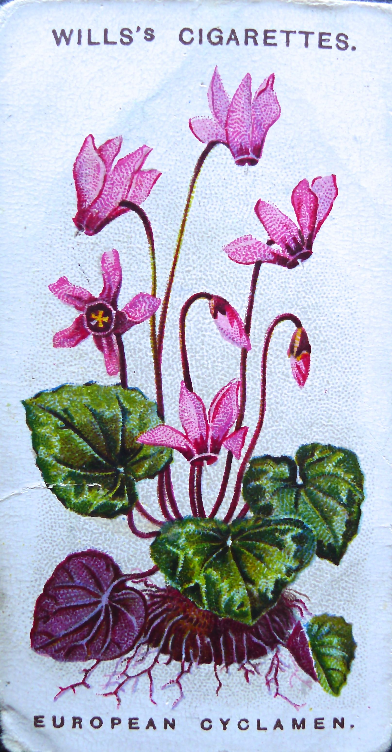 European cyclamen, Cyclamen europaeum, Wills’ Alpine Flowers, 1913 – 1
