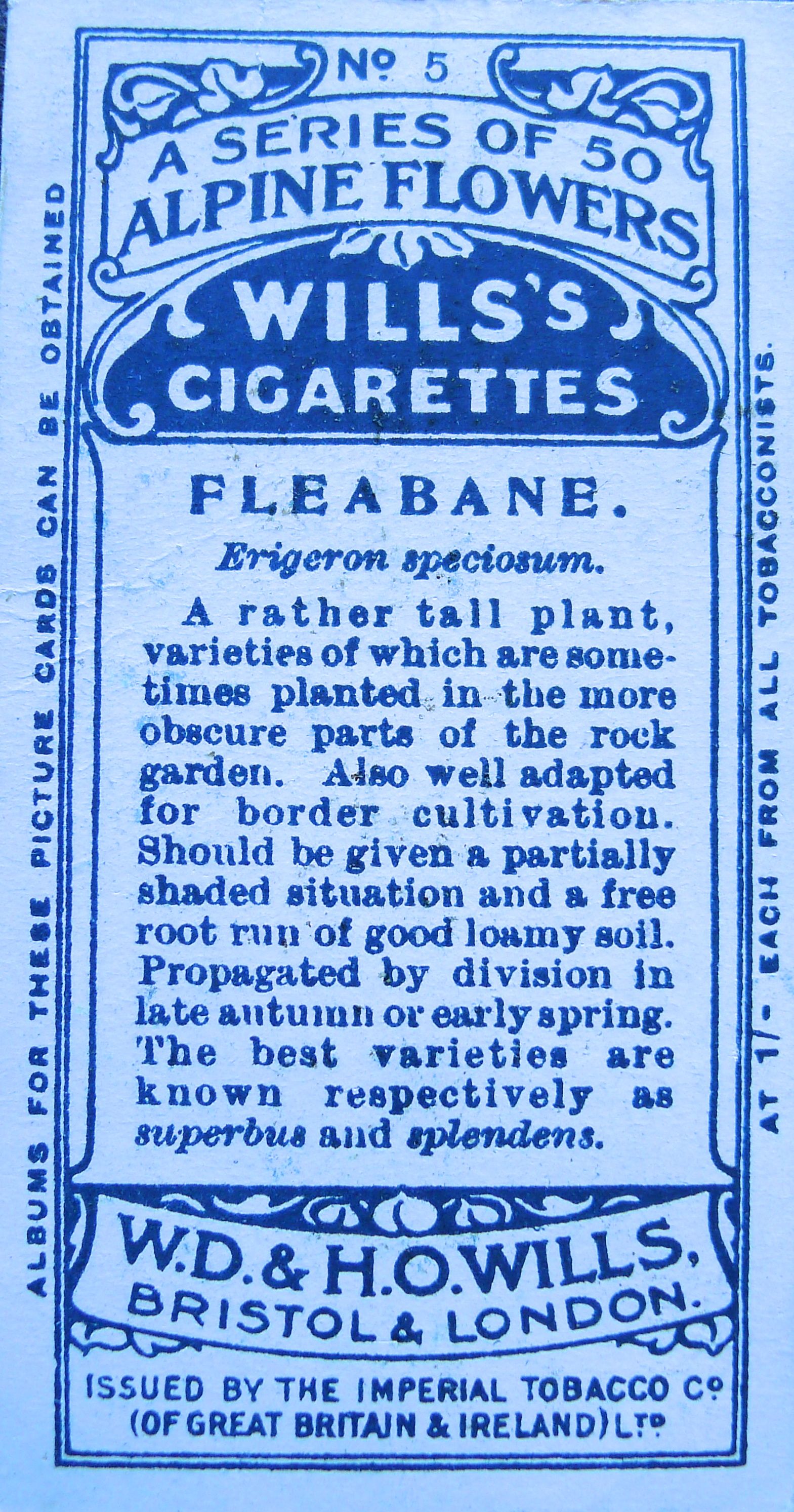 Fleabane, Erigeron speciosum, Wills’ Alpine Flowers, 1913 – 2