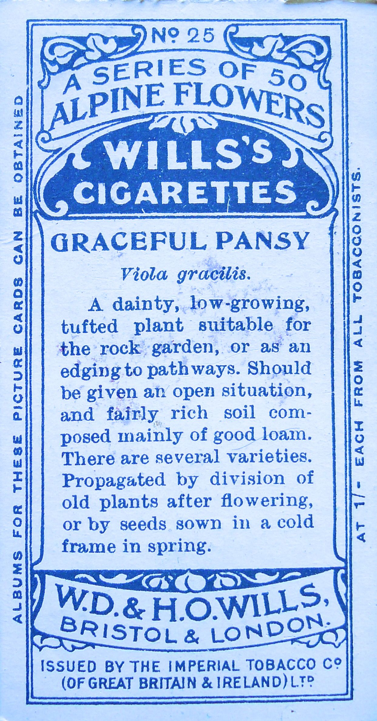 Graceful pansy, Viola gracilis, Wills’ Alpine Flowers, 1913 – 2