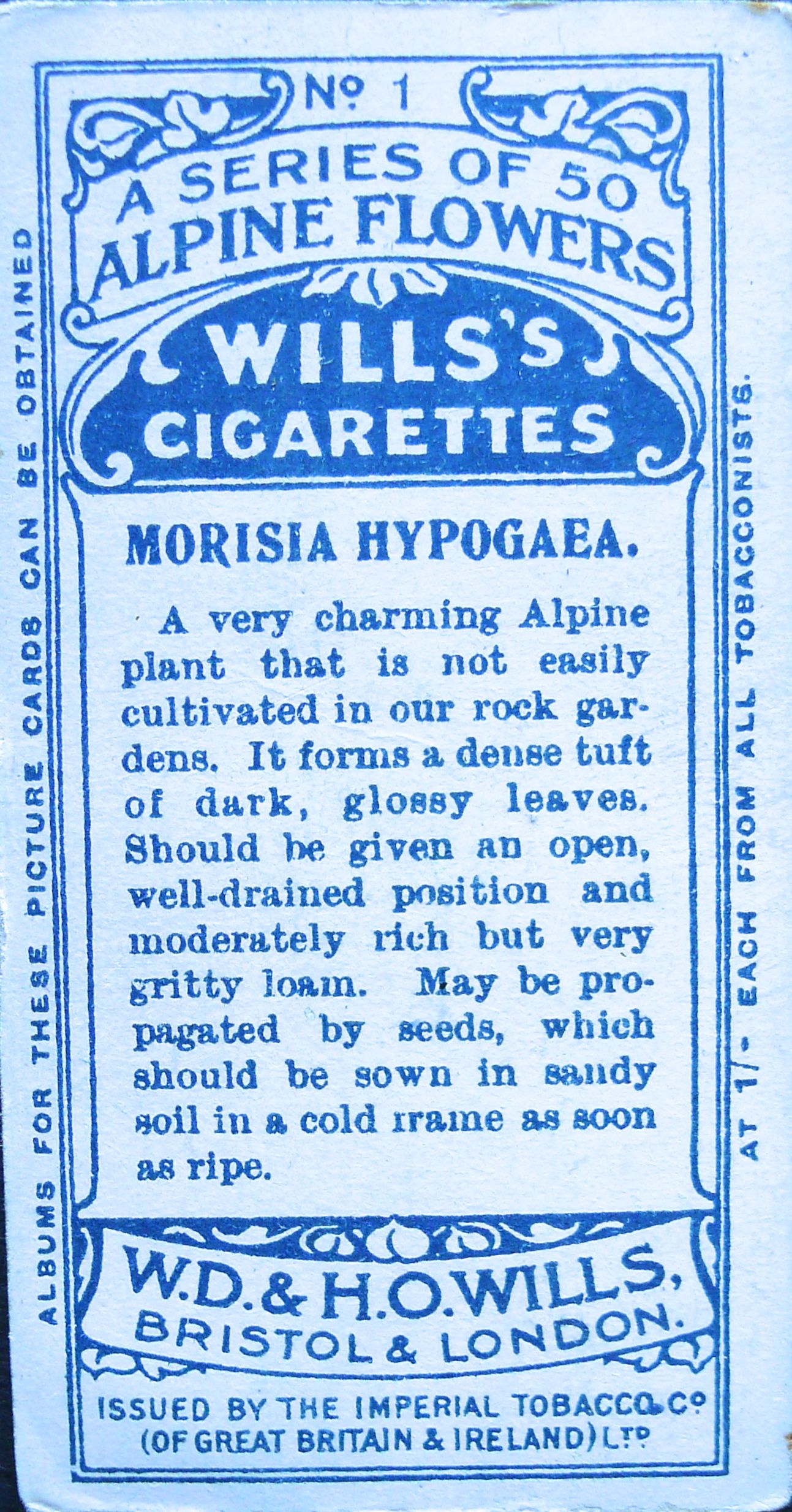 Morisia hypogaea, Wills’ Alpine Flowers, 1913 – 2