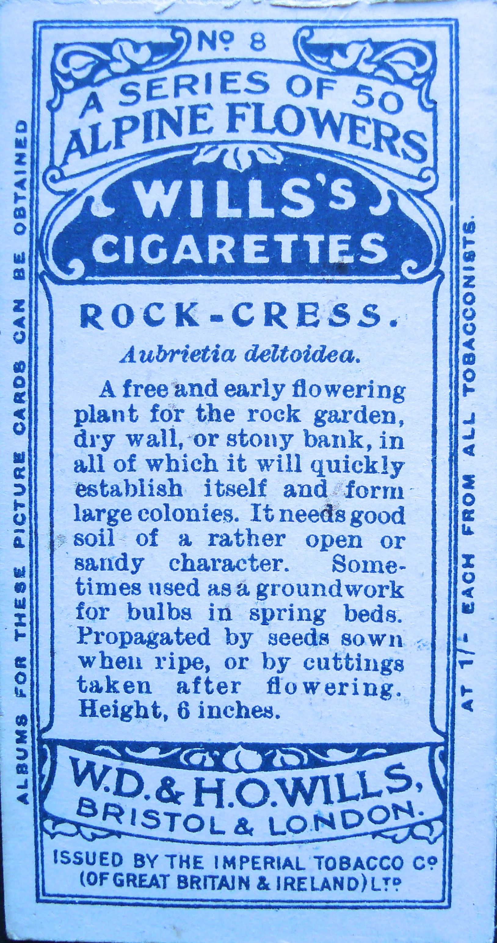 Rock cress, Aubrietia deltoidea, Wills’ Alpine Flowers, 1913 – 2