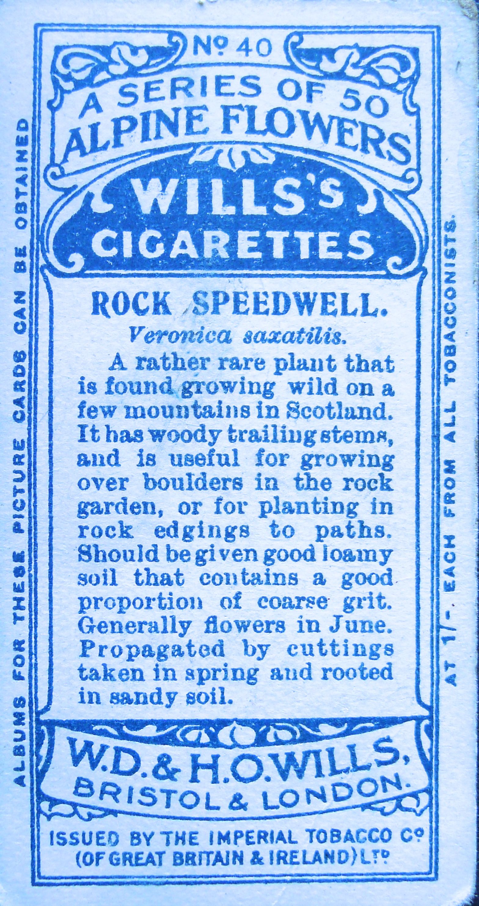 Rock speedwell, Veronica saxatilis, Wills’ Alpine Flowers, 1913 – 2