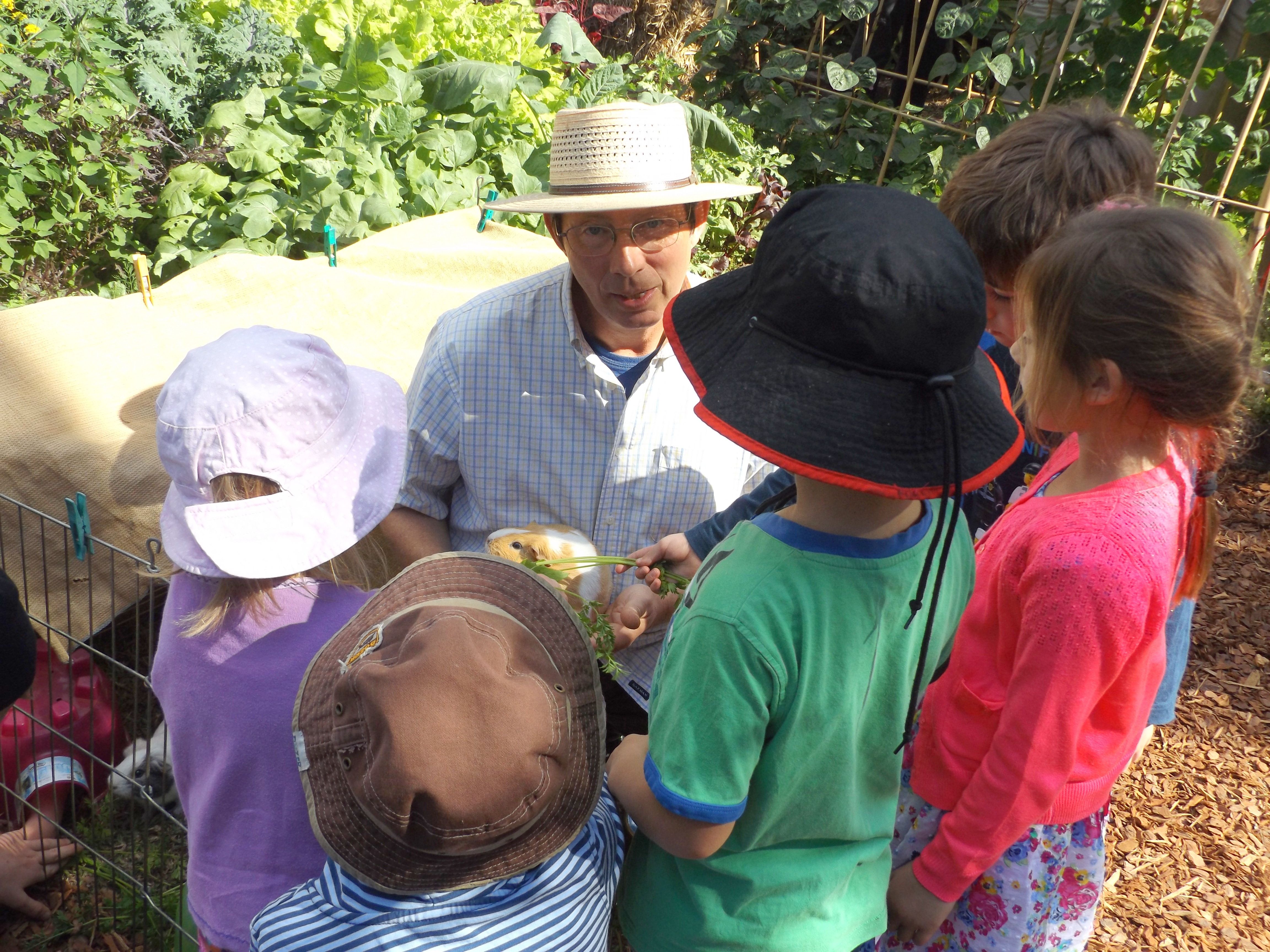 Feeding Chickweed, the lawn mowing guinea pig. Photo: Noel Burdette