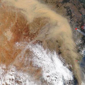 In October 2002 a large dust storm, apparently visible from space, and carrying millions of tonnes of soil, stretched from northern Queensland to southern NSW and spread soil east as far as New Zealand.