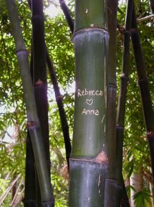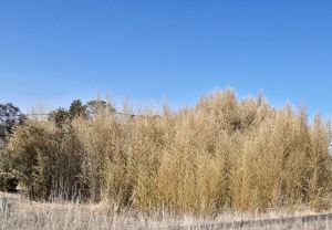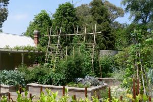 I planted bamboo because it is important in sustainable living: food, shade, privacy, security and for supporting vines. Pheasant coucals and possums gravitate towards the shelter of my bamboo which, now it is seventeen years old, has grown to become a landscape statement without outgrowing the allocated space in its position between the fence and a raised vegetable bed. Judicious harvesting keeps it that way.