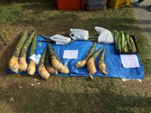 I harvested my second picking of the year this morning. Bamboo shoots go well with stuffed lá lốt (Piper sarmentosum) – a light, satisfying lunch for high summer. Fresh, cooked bamboo shoots stored in salt water in a sealed container in the fridge last for many weeks – my one plant provides enough shoots for up to six months.