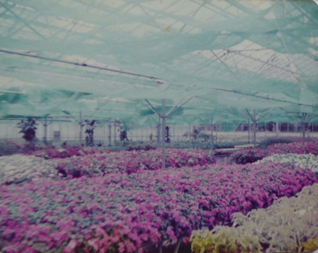 Several acres of ploughed fields to the north of the stable blocks and to the south were where we grew row upon row of flowering and evergreen shrubs, roses, and hundreds of street trees. All destined for GLC parks and housing estates. Plus we supplied indoor decoration – foliage plants and cut flower displays – for inside County Hall. These were grown in the main glasshouse complex, alongside a propagation house and a weaning house. About thirty purple-leaved Dodonea also known as hop bush, were maintained in 18 inch pots for occasional use as a colourful backdrop in those indoor flower displays at County Hall.