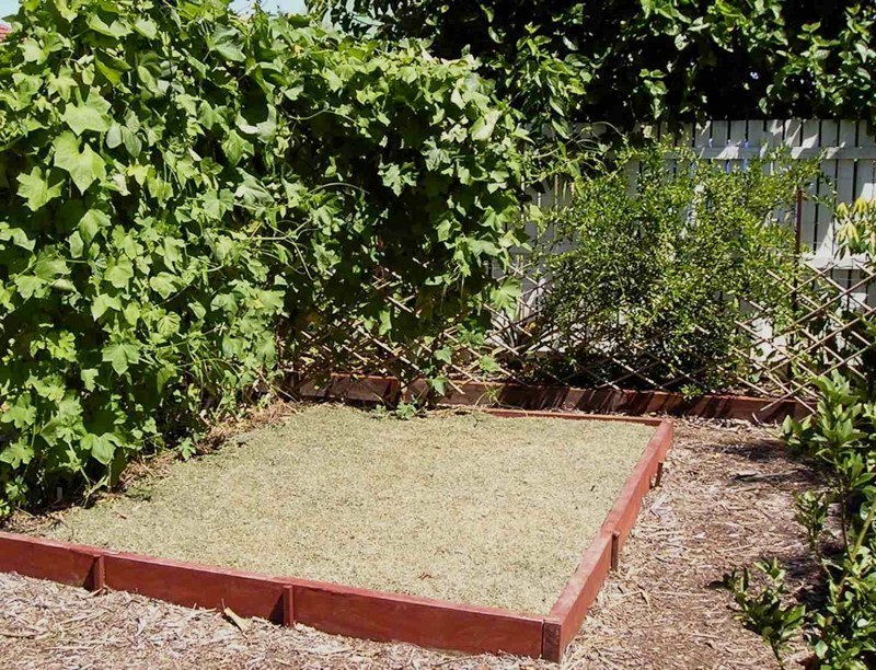 The tank is near empty so thirsty, less productive plants are cleared & composted and beds mulched